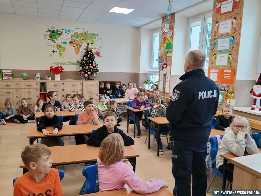 W ramach akcji Bezpieczne Ferie 2026 włoszczowscy policjanci odwiedzają szkoły, przypominają zasady bezpiecznego zimowego wypoczynku, bezpieczeństwo na drogach i w sieci oraz zachęcają do udziału w konkursie Śnieżny Dekalog.